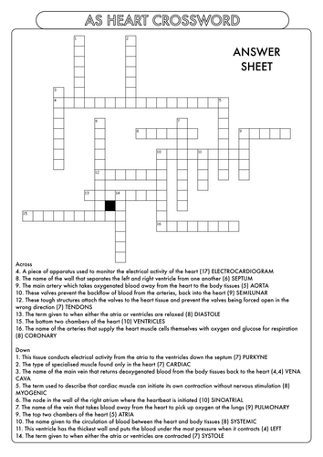A Level Biology Crossword Pack On The Lungs And Heart Teaching Resources